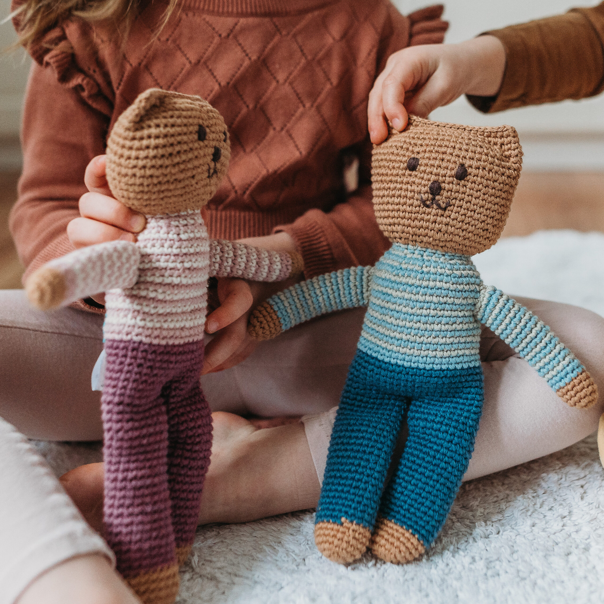 This soft bear is made entirely by hand with natural materials and as such there will be slight variations in size, colour and design in line with the unique nature of this product.